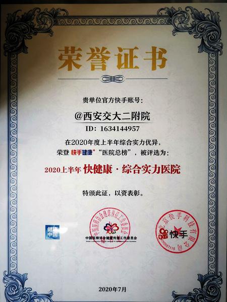 西安交大二附院荣获2020年上半年“快手健康”多项荣誉