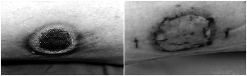 患者王某,中年男性,两个月前不慎烧伤左小腿,诊断为三度烧伤,面积1%,辗转于多个医院的换药室进行创面处理。然而,由于患者自身患有糖尿病数十年,且一年前曾因脑出血后遗症导致左侧肢体活动不灵活,烧伤后左小腿肿胀明显,只能依靠轮椅活动,换药两个月后创面仍有鸡蛋大小(6cm′5cm)。患者和家属打听到我院普外4病区(干四病区)黎跃华主治医师专门从事创面修复治疗专业,可以做植皮手术,慕名前来住院治疗。
