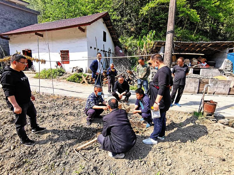 得到肯定后,刘世杰和同事们开始着手魔芋试验田的建设工作。万事开头难,一番动员下来,没有找到愿意试种的农户和地块。在大家一筹莫展之际,徐英军说:“我来试试吧”。在他的带领下,村党支部副书记王家胜、监委会主任张波也加入其中,试验田有了3亩各具代表性的土地:坡地、平地、水田。得知启动资金存在困难后,二附院决定出资6万元,一部分用于平整土地、购买种子、雇佣劳力,另一部分用于试种成功后的推广。在医院的支持协调下,2020年4月,安康学院农业专家廖咸康教授一行到村开展实地考察和技术指导。“要选外表光滑饱满,表皮没有明显伤口的种芋,种植前要先用消毒剂处理,杀掉表皮附带的细菌,要纵向开沟挖沟,沟深大概5厘米,要在土地上面覆盖两层玉米杆,魔芋种放在玉米杆上,再覆盖腐土......”,在田间课堂,大伙听得津津有味。村里聘请廖教授为技术顾问,还建立了“线下”实地教学+“线上”远程指导的技术合作关系,为魔芋试验田的“茁壮成长”保驾护航。