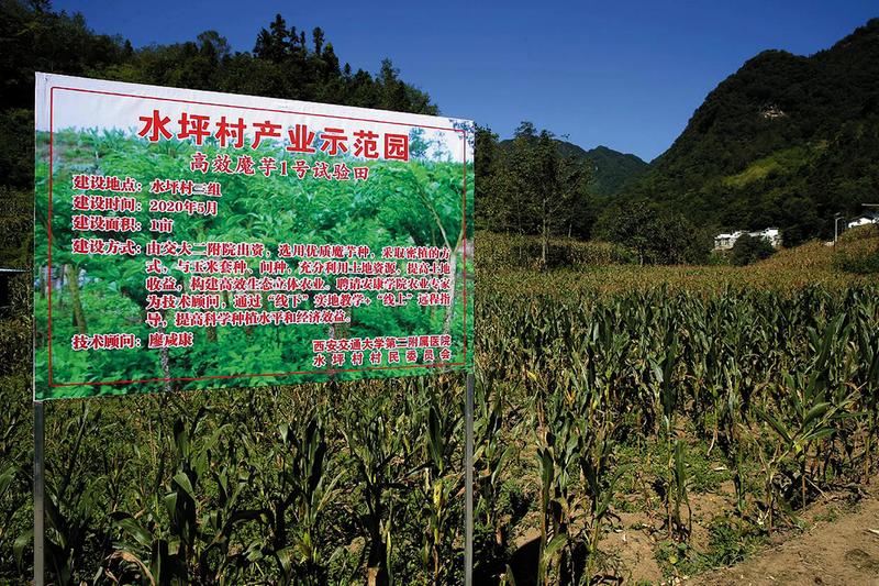 处暑过后,气温变得温和起来。走进平利县洛河镇水坪村,一片方圆规整、青翠旺盛的魔芋引人注目。“这是咱村的魔芋试验田,也是今年产业发展的一道‘新菜品’”,西安交大二附院派驻水坪村第一书记刘世杰兴致勃勃地介绍起来。水坪村是贫困村,精准扶贫开始后,镇村两级和对口帮扶单位西安交大二附院一起,针对劳动力外流、耕地面积小、土地贫瘠等村情,制定了“因户施策、种养结合”的产业发展框架。通过完善基础设施,挖掘致富能人,培育大户主体,建设产业园区,实施“三变”改革,建立联结机制等方式,近年来,全村累计发展茶园1400余亩,魔芋1200亩,烤烟300亩,养猪1500头,养蜂1000箱,初步形成了有主导产业、有增收保障的良好格局。