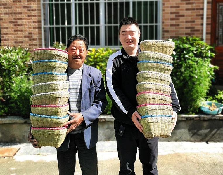 不仅如此,刘世杰和赵永林还当起了义务“推销员”,在他们的介绍下,洛河镇双垭村的茶商订购了16个精美实用的采茶竹篓,村里电商合作社也找到刘瑞银,下了竹簸箕的订单。“从去年到现在,光是做篾匠,都挣了近6000块呢”,刘瑞银高兴地说道。