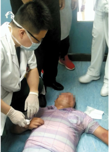 “医生,快,有人抽风了!”一名无陪人门诊患者在途径西二楼1层神经内科重症监护室问路时突发意识丧失、四肢抽搐、口吐白沫。听到呼喊,范松华住院总医师、刘媛媛护士长立即查看患者、组织抢救,保持呼吸道通畅、建立静脉通路、缓慢静推地西泮等一系列措施有条不紊,患者抽搐逐渐停止,但仍有意识不清。随后在医、护、保卫部护送下将患者转运至急诊抢救间继续观察,患者逐渐清醒。与家属取得联系后得知患者有癫痫病史,这次是慕名来我院进一步诊治的。