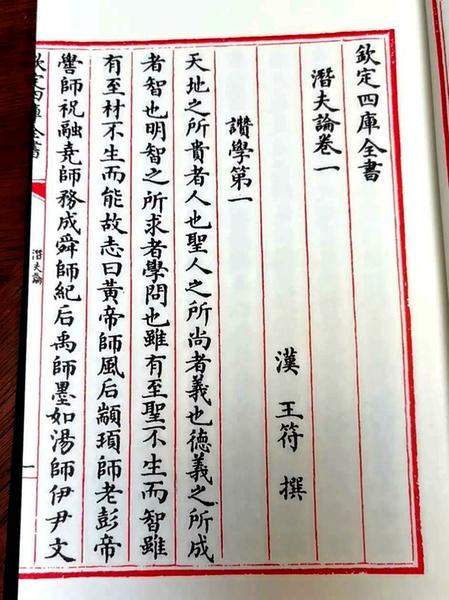 (《潜夫论》封面及卷一的第一页"赞学第一")