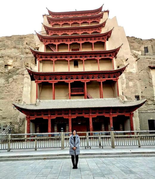 按照规定参观了3-4个洞窟,但不能拍照。给我印象最深的是,唐朝的雕像和画像最优美。在唐朝的洞窟内,随着讲解员的手指所向,无论是雕像或壁画,人物的手指、衣服、面容以及身段,线条优美、颜色柔和协调、造型逼真,人物栩栩如生。欣赏着壁画中飞天美女,突然想再欣赏舞蹈“飞天和反弹琵琶”,那将会更有寓意。在参观中,漂亮的讲解员指向一幅壁画问我,这像什么图?没等我回答,她就说“像不像月饼的图案?”仔细看,岂止是像,还真是一模一样! 由于丝绸之路的衰败,与唐朝相比,以后几个朝代的壁画或雕像,可谓“粗制滥造”。看来,“盛世”体现在方方面面包括洞窟内的壁画和雕像。不记得有无汉朝的壁画。据说有唐朝壁画反映汉武帝送张骞出师西域的壁画,可惜我没有看到。没有时间去看附近的月牙湖。