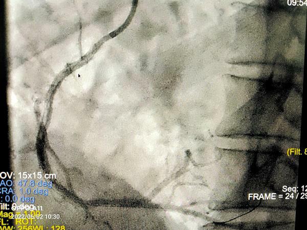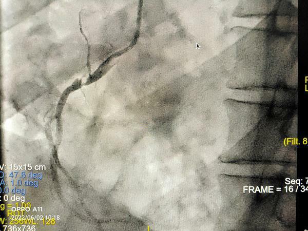 图4 本报讯近日,我院心血管病医院副主任韩振华、王新宏副主任医师的心脏瓣膜团队,成功为一名风湿性心脏病联合瓣膜病(主动脉瓣重度狭窄伴重度反流)合并冠脉严重病变患者实施一站式经导管主动脉瓣膜置换术(TAVR)+经皮冠状动脉支架植入术(PCI)。患者术后第2日即可下床活动,胸闷、气短等不适较前明显减轻。