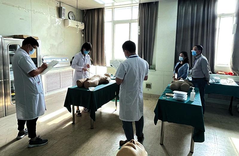 考试采用客观结构化考站(OSCE)和实际操作相结合的模式,严格遵循疫情防控常态化的工作要求,在避免聚集的前提下,采用多站并行,合理疏导,考场井然有序。从各学科系抽调的20名考官,在繁忙的临床工作之余,认真执行了监考工作,技能中心工作人员全员投入,协调、准备各项工作,聘请的标准化病人和查体志愿者也积极配合,保证了考试的顺利进行。