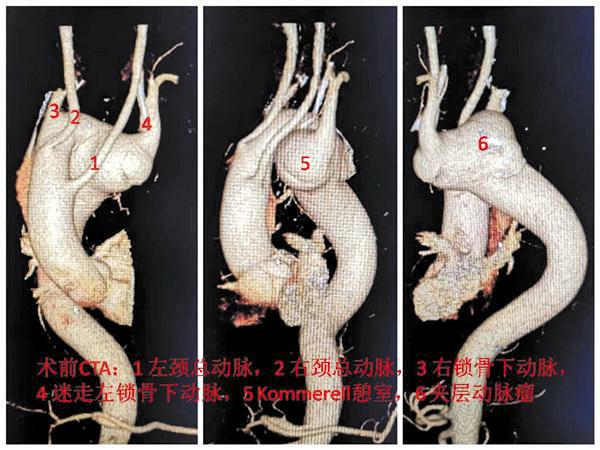 本报讯近日,心血管外科收治一例罕见主动脉弓部解剖形态异常的Kommerell憩室胸主动脉瘤合并急性主动脉夹层形成患者,在多学科配合下,使用覆膜支架隔绝夹层动脉瘤联合弓部分支血管烟囱支架重建及内漏分支血管的可解脱弹簧圈栓塞技术,成功改善患者临床症状,最终达到矫正异常发育的主动脉及预防动脉瘤破裂风险的理想效果。