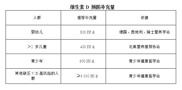 近年来,随着家长对儿童保健的重视,很多父母已经在为婴幼儿规律补充维生素 D。但在4岁之后,大多家长会选择停止补充,对维生素D的认识不足以及误区,限制了维生素D补充剂的应用。如果户外活动不足,或光照受到限制,如北方的冬春季,建议及时预防性补充维生素 D,具体的推荐剂量如下: