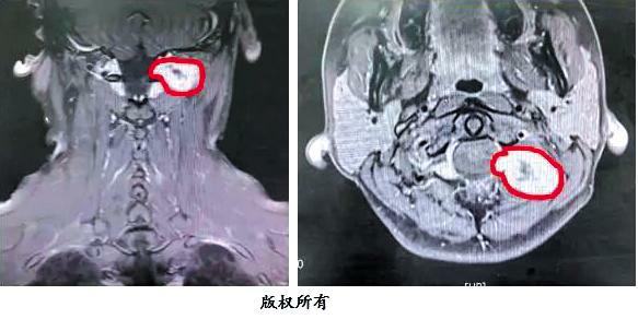 5. 肿瘤性病变,影响C2和C3神经根(如上图红色实线内肿瘤)
