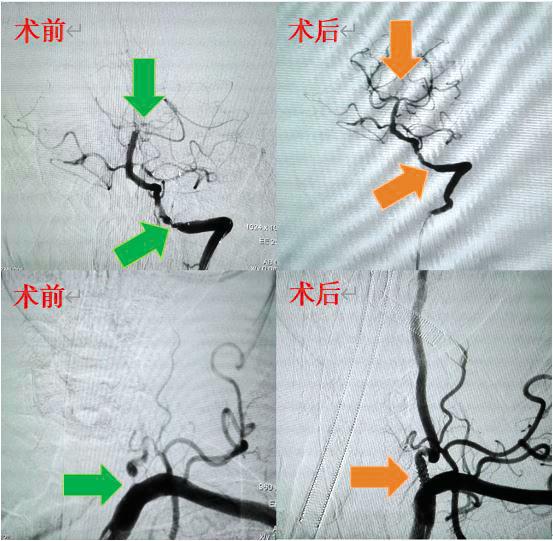 患者术前及术后的脑血管造影DSA对比图 本报讯近日,神经内科介入团队为一位院内卒中患者桥接取栓,及时挽救了患者生命。