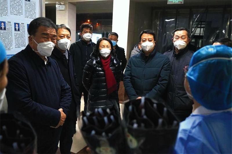 会后,李宗芳院长、刘昌书记带领医院班子成员,赴发热门诊、西二楼阳性病区、儿科、急诊、重症、大明宫院区等病区,看望奋战在新冠患者救治一线的医护人员,送上医院对广大职工的问候和关心。
